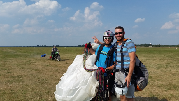 Ein Wochenende, wie man es sich nur wünschen kann. Stephan brachte unseren Neulingen die ersten Schritte am Übungshang bei, gleichzeitig lief in Großenhain das Tandemkarussell mit vielen begeisterten Passagieren auf Hochtouren. Danke an Thomas, Patrick, Karl, Stephan und allen anderen Beteiligten für den großen Einsatz in der tropischen Hitze dieses Spätsommers. Unsere Fotos