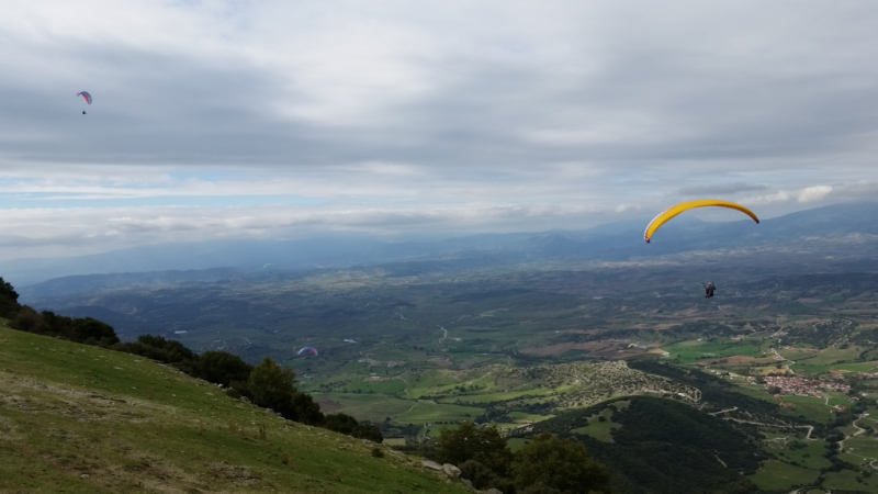 „Bedecke Deinen Himmel, Zeus!“ forderte einst Prometheus vom Göttervater. Der hält sich gelegentlich heute noch dran – ausgerechnet auch in unserer Woche. Viel Sonne bekamen wir so leider nicht zu sehen, sind aber trotzdem am Olymp und am Meer geflogen, in der Thermik gekreist und am Strand gelandet, haben die Meteora-Klöster besucht, das wunderschöne Kastanienfest mitgefeiert und die leckere griechische Küche genossen. Damit hatte der olle Zeus wohl nicht gerechnet, er schickte uns auf der Fahrt zum Flughafen noch Blitz und Donner hinterher. Fotos