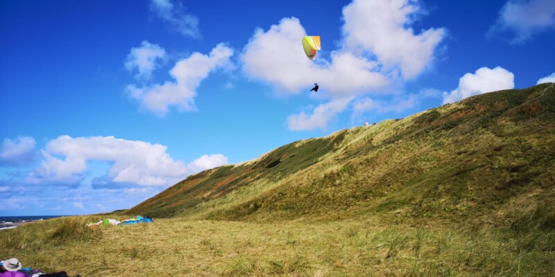 Gleich am ersten Tag hatten wir perfektes Flugwetter mit vielen Stunden Airtime. Das ist in Dänemark nicht selbstverständlich! Beste Bedingungen für Groundhandling, Rückwärtsaufzieh- training bei wirklich starkem Wind und Soaring entlang einer wunderschönen Steilküste entschädigten schon im Voraus für die folgenden stürmischeren Tage. Die boten dann endlich mal die Möglichkeit für einen Besuch in Egon Olsens Bunkermuseum! Der letzte Tag hielt dann noch einmal Traumwetter bereit – soviel konnte man gar nicht fliegen, wie man hätte können. Hier unsere Eindrücke.